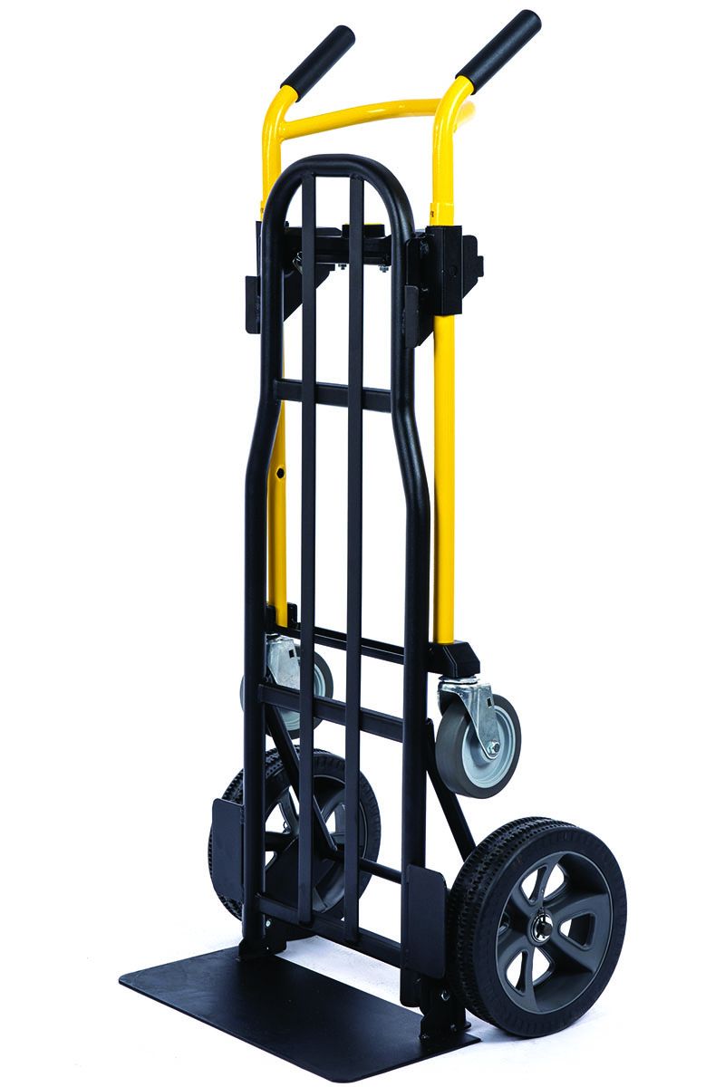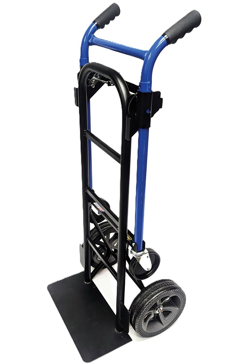 Converts from 2-wheel dolly into 4-wheel cart in seconds